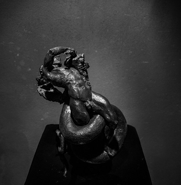 La exposición recorre la obra escultórica de Mapi Gutiérrez, desde su colección de figuras de pequeño formato en los que relata los doce trabajos de Hércules, a su trayectoria escultórica de obra pública y monumental, de la que se muestran imágenes, bocetos y dibujos.