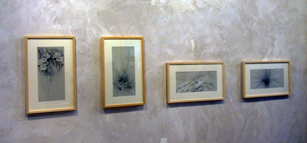 La invitación a reflexionar planteada por José Miguel y Aurora ha llevado, en cambio, a Rosa Castellot hacia la naturaleza. Así, desde la posición de planta baja, Castellot ha llegado a sus dibujos –grafitos- de planta(s) baja(s). “Son –explica- las más humildes, tanto que a veces pasan desapercibidas ante la grandiosidad de los árboles o la belleza de las flores”. Ante la comparación, Rosa Castellot defiende sus plantas bajas desde su utilidad, “desde los misteriosos beneficios que contienen hasta los letales venenos que encierran”.
