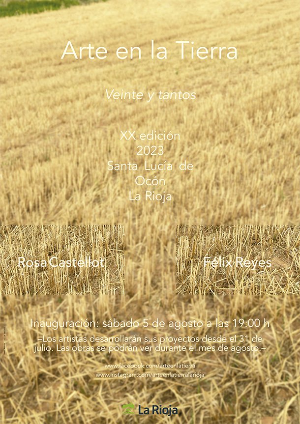 'Arte en la Tierra' celebra su vigésima edición y que mejor cartel para celebrar tan redonda e importante efemeride que los artistas protagonistas sean quienes crearon y pusieron en marcha el certamen veinte años atrás, Féliz Reyes y Rosa Castellot, en Santa Lucía de Ocón, un pequeño pueblo de La Rioja. Cuentan Reyes y Castellot que han sido meses de insistencia de los comisarios del festival -comisarios y amigos- para que este año asumieran el papel de actores principales. 'Arte en la Tierra' se celebrará en 2023 bajo el título de 'Veinte y tantos' y el escultor y la dibujante serán los únicos artistas invitados.