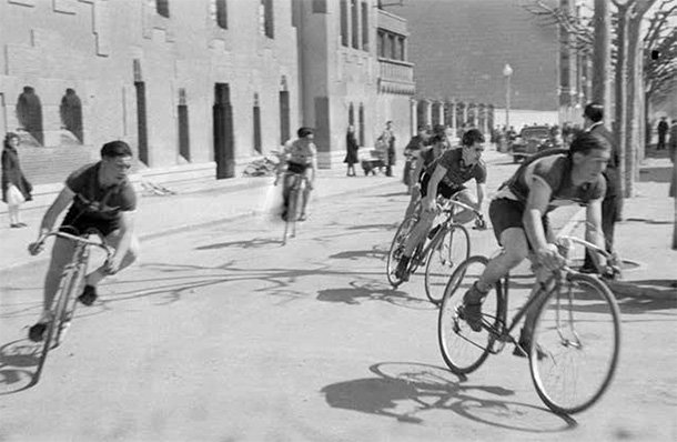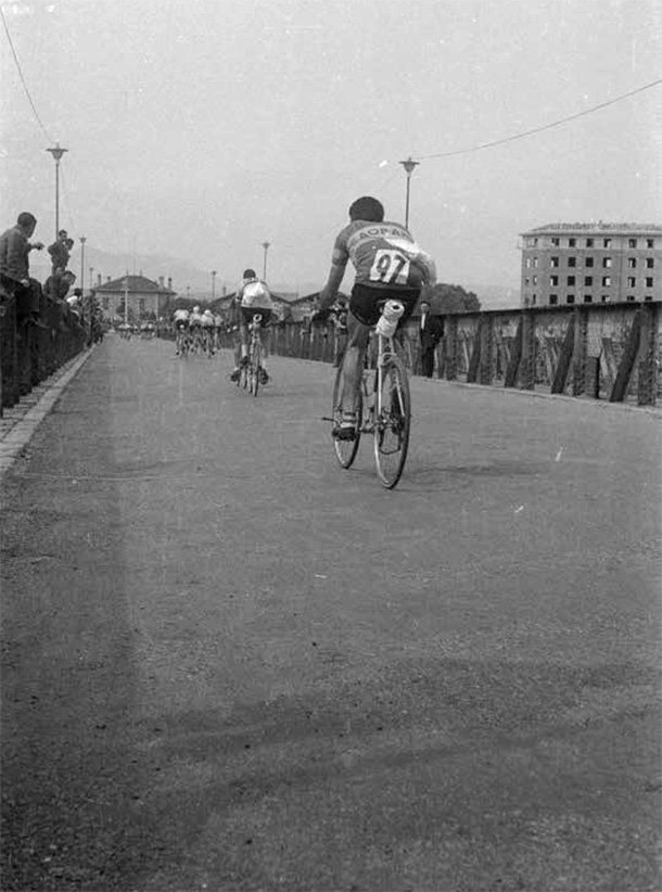 “Pero ya iba en el coche –sonríe aliviado–, aquellos tiempos eran muy duros para practicar ciclismo. Estamos hablando de hace setenta años. Siente algo de envidia cuando ahora contempla pasar el pelotón en alguna carretera y escucha el peculiar sonido de las cadenas moviendo los desarrollos al unísono, pero lo cierto es que al echar la vista atrás aparecen tiempos difíciles para ser ciclista. “Al final de temporada tenía que pagar las deudas por las averías que me habían ido arreglando, tenía mi cuenta corriente en el garaje. Eran un tiempos pobres, pero la ilusión que tienes a esas edades… luego ves que va pasando el tiempo y no eres nada –se ríe–, pero la ilusión…”.