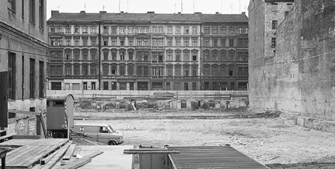 Entre 1978 y 1980 fotografió el barrio berlinés de Friedrichstadt, en el sur de la ciudad, gravemente dañado durante la Segunda Guerra Mundial. Estas fotografías, como puede constatar el visitante a la exposición, capturan la atmósfera del Berlín Occidental de la posguerra, una ciudad que aparece con huecos entre edificios, solares sin construir y cortafuegos. Entre los temas dominantes figuran descampados urbanos y edificios públicos que fotografió con una luz difusa y una cámara de gran formato. En estos trabajos, Schmidt logró composiciones pictóricas que se sitúan en la frontera entre documentación y abstracción. Su 'Berlin nach 45' [Berlín tras el 45] no se publicó hasta 2005, un cuarto de siglo después de haber tomado las fotografías. Con el fotolibro Berlin-Kreuzberg. Stadtbilder [Berlín-Kreuzberg. Paisajes urbanos], publicado en 1983, empezó a alejarse del lenguaje documental tradicional y experimentó con un enfoque más subjetivo.