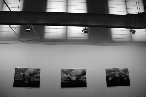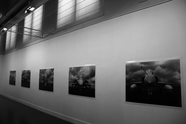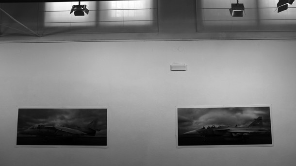 El paralelismo entre la obra de Tiziano, el catálogo de la armería de los Clifford y las fotografías de Vallhonrat discurre a través del simbolismo entre lo militar y el poder, tanto en el pasado como en la actualidad. Y es que las imágenes que componen ‘Escenas de caza’, que hasta el 3 de septiembre acoge la Sala Amós Salvador de Logroño, muestran una amplia serie fotografías de aviones de guerra. En concreto esos aviones de ataque rápido, más conocidos como ‘cazas’. Quizá, a primera vista, ‘Escenas de caza’ pueda parecer tan sólo una extensa serie de fotografías de aviones de guerra, una especie de catálogo.
