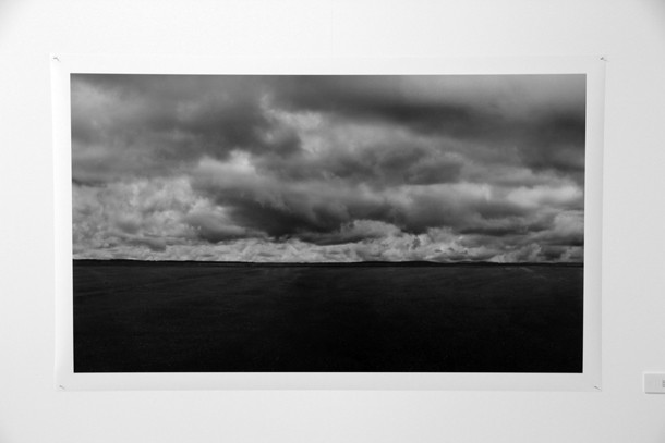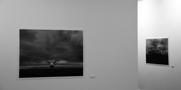 Los aviones están acompañados de inquietantes paisajes en los que domina un cielo de nubes que posa sobre una delgada línea de horizonte y el espacio vacío de cemento o asfalto de pistas de despegue y aterrizaje. Algunas de las fotografías de Vallhonrat tan sólo muestran las bases aéreas, sus pistas, con las nubes al fondo y una marcada línea de horizonte. De alguna manera, recrean la nada y siempre en un elegante blanco y negro. Habla Olmo de ‘no lugares’, pistas de aterrizaje donde la mayor parte del tiempo no está sucediendo prácticamente nada, pistas que son silencios, espacios suspendidos.