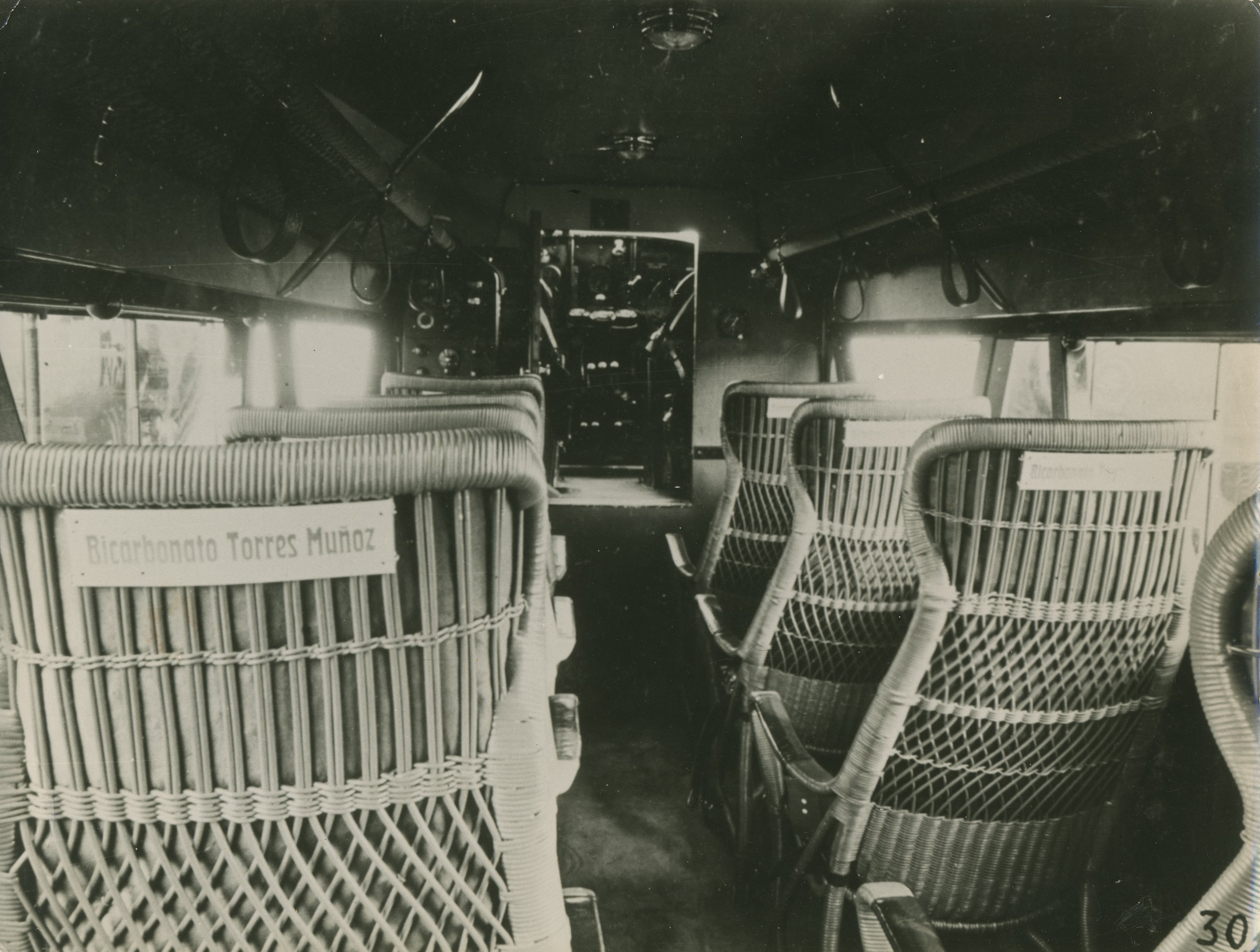 Las fotografías antiguas permiten recordar, ahora que volar se ha convertido en algo casi cotidiano, la magia de otros tiempos. Los primeros pasajeros vuelan compartiendo el exiguo espacio de las sacas de correo. La aparición de aviones más grandes permite unas cabinas de pasaje con un mínimo de comodidades. La construcción en madera y tela, incluso los primeros aviones metálicos, suponen un escaso aislamiento del ruido de los motores y el frío exterior. De ir sentado entre sacas de correos a una butaca de mimbre, como vemos en algunas fotos, hasta llegar a aparentemente cómodos sillones de cuero. Un documental de la época nos advierte: en el Junkers G24, el primer avión de pasajeros completamente metálico, se puede viajar con las ventanillas bajadas. Las cabinas aeronáuticas comparten diseño con trenes y autobuses: butacas, asideros, portamaletas de rejilla para el equipaje de mano y ropa. No hay calefacción ni aire acondicionado. El vuelo tiene todavía su parte heroica, la comodidad sacrificada en aras de la velocidad y la modernidad, sin renunciar a cierto lujo.