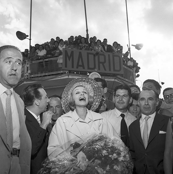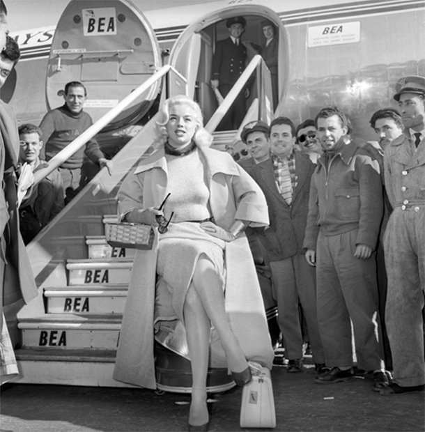 La llegada de personalidades incluye la fotografía ritual al pie de la escalerilla del avión, en la plataforma aeroportuaria. Personalidades, actores y actrices, cantantes y famosos sonríen desde las puertas del avión, desde la escalerilla. Las estrellas cinematográficas aterrizan, adquieren materialidad al descender al suelo. Días más tarde, ascienden de nuevo al olimpo cinematográfico de nuevo en alas de aeroplano.