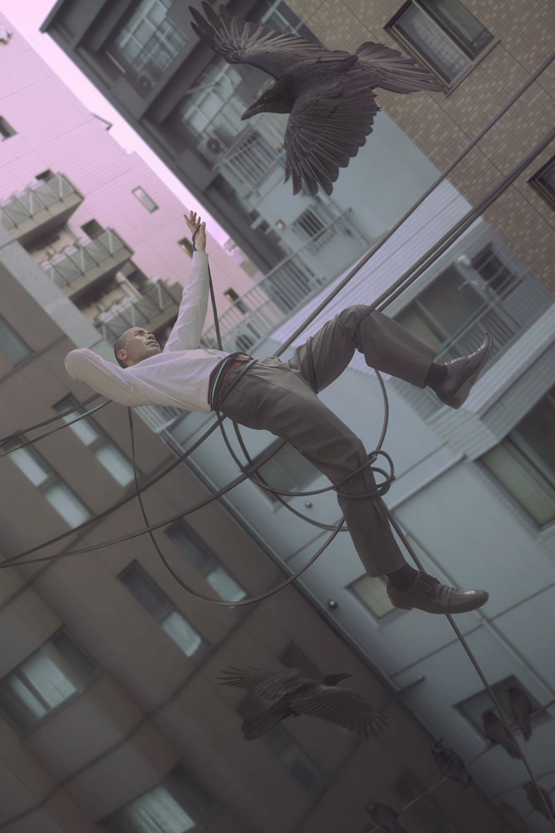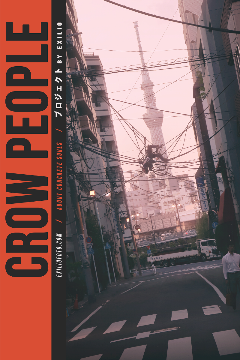 Crow People es un proyecto de arte digital en el que se retrata una serie de personajes que simbolizan la maraña existencial. "Utilizando a los asalariados o salary men japoneses como trabajadores prototipo, y los postes eléctricos que simbolizan un sistema que despliega sus tentáculos por toda la nación, se crea una metáfora de esa situación, de esas sensaciones y emociones tan difíciles de expresar para la sociedad". Los personajes se enredan, se retuercen, se asfixian, se agotan, se resignan… "Con rostros casi hieráticos, con vértigo y temor a liberarse de una red que saben que si cede, les dejará caer al vacío. Desde este escenario, el proyecto invita a reflexionar sobre los verdaderos significados de conceptos como la libertad, la voluntad, el control, la autorrealización o la alienación, expropiándose de sus sentidos comúnmente aceptados y convirtiéndose en una hoja en blanco para redefinirse a voluntad del propio espectador".