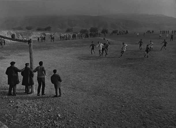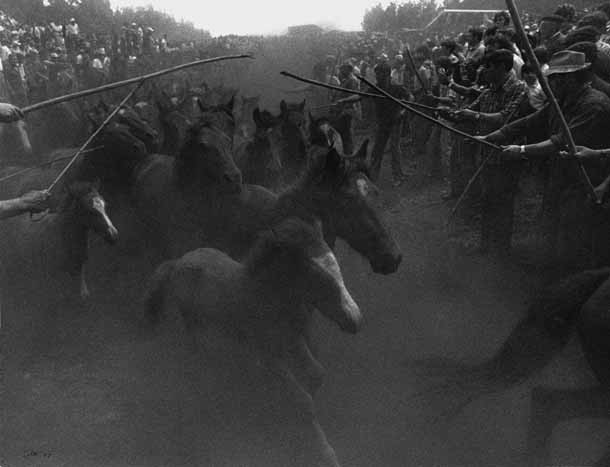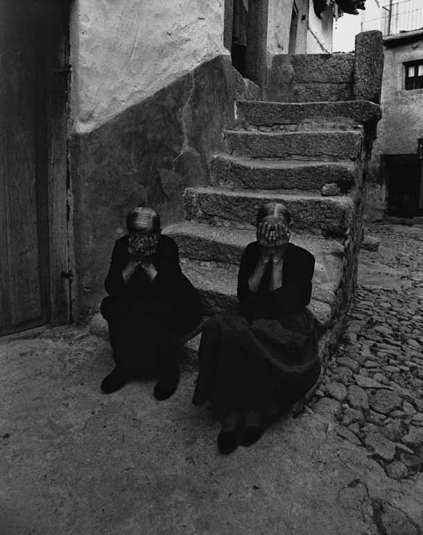 Unas veces la clave que te congelan ante el blanco y negro de las imágenes se encuentra en una mirada, en un gesto o en unos brazos cruzados, otras en la fuerza de una expresión, en unas manos que se tapan la cara, en una escalera que serpentea a lo alto y a lo ancho, en la furia de unos caballos o la intensidad de un partido de fútbol sobre un campo de tierra y guijarros.