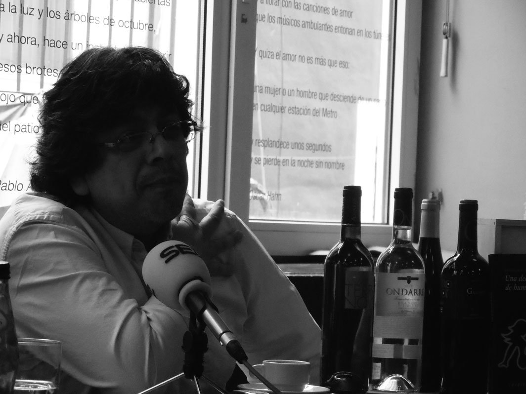 Fernando Iwasaki llega al Café Bretón y asegura sentirse como en casa. “Con el calor que hace –dice- en Logroño estoy como en Sevilla”. El escritor peruano, asentado en la capital andaluza desde hace años, trae bajo el brazo la edición de ‘Una declaración de humor’, el libro con el que se hizo merecedor del último galardón literario del Café Bretón. Y como no podía ser de otra manera sobre el humor transita la conversación con los periodistas.