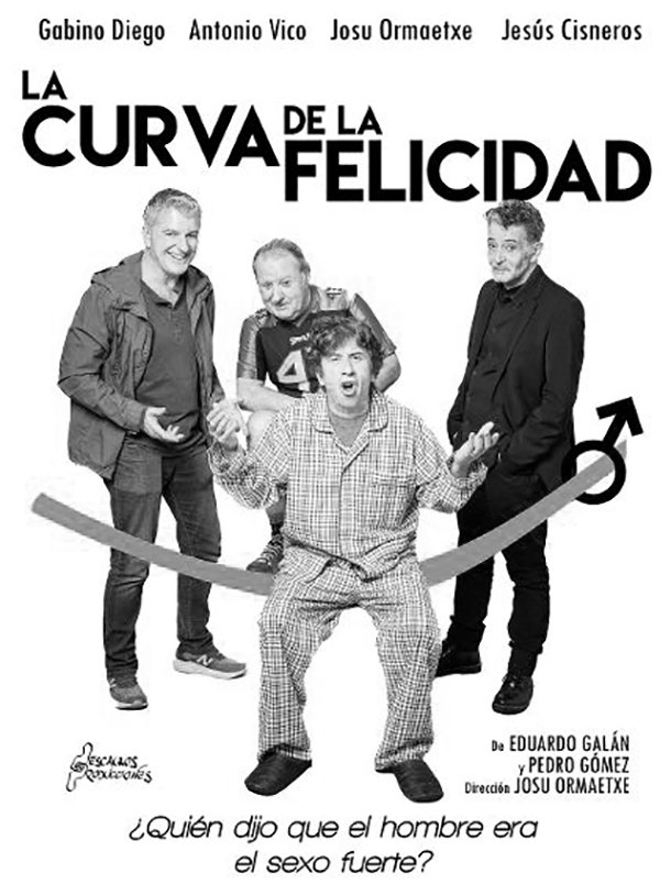 El Teatro Bretón estrena este sábado, 9 de septiembre, a las 20:00 horas, la obra ‘La curva de la felicidad’ de Eduardo Galán y Pedro Gómez. Producida por Descalzos Producciones, está interpretada por Gabino Diego, Antonio Vico, Josu Ormaetxe y Jesús Cisneros.