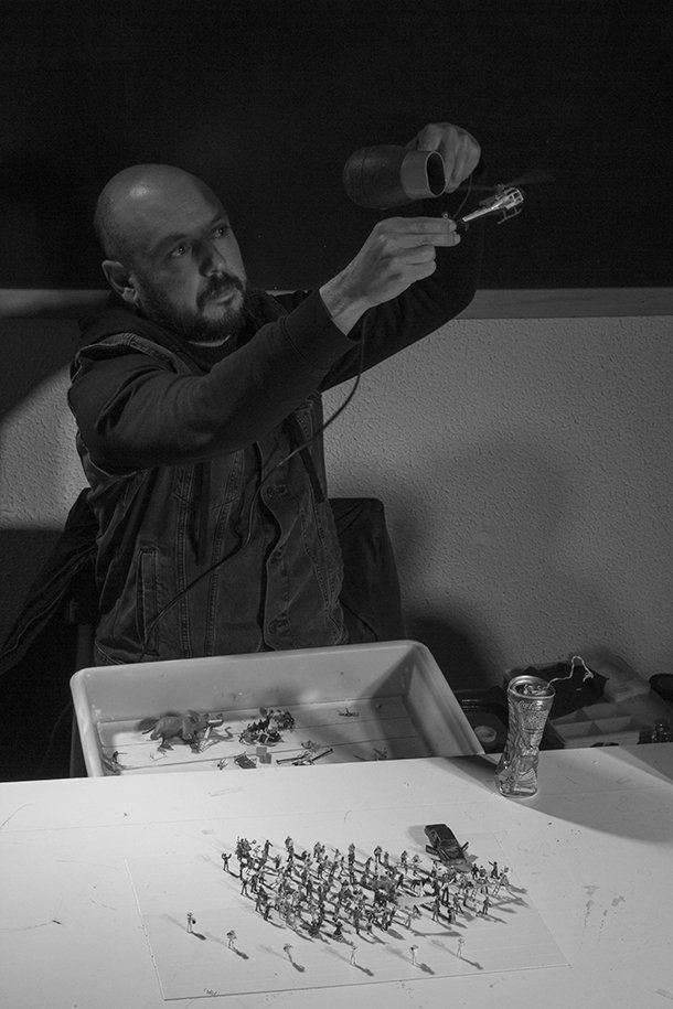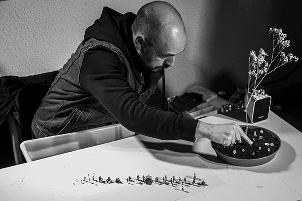 Espinosa encontró una respuesta a la pregunta, su respuesta. ‘Mi gran obra’ difícilmente puede ser más grande, lo tiene todo y están todos los personajes que uno pueda imaginar. Desde los improvisados palcos del Escenario Insólito de la logroñesa Galería Minúscula el espectador se pregunta sorprendido si no será uno de esos pequeños personajes sobre los que el dios/actor determina su designio. A través de los anteojos con los que sigue la representación no resulta extraño que usted se reconozca en el Liliput creado por David Espinosa./Javi Muro