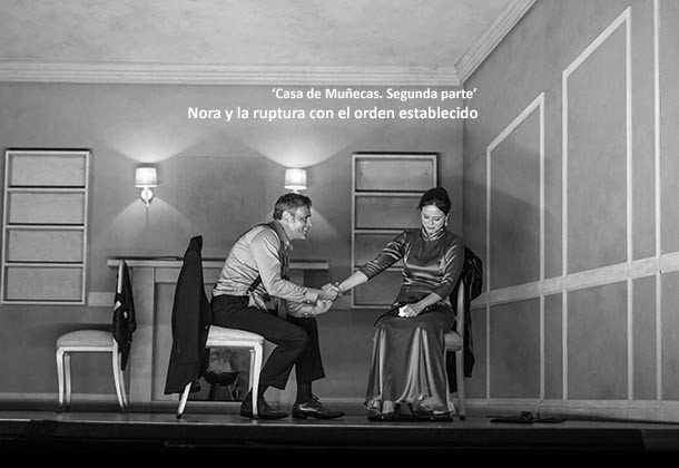 Recuerda Aitana Sánchez-Gijón que el personaje de Nora provocó un escándalo al presentarse la obra de Ibsen, siendo incluso prohibida en algunos teatros. “Nora representa la ruptura con el orden establecido, especialmente en lo referente a las responsabilidades dentro de la familia”. Por otro lado, en el texto de Hnath se percibe una evolución en el personaje del exmarido Nora. En la obra de Ibsen, Torvald resulta una persona bastante despreciable, paternalista y canalla. Ahora, 15 años después, se muestra como un hombre que ha descubierto que años atrás desempeñó el papel que le imponía la sociedad. ‘La vuelta de Nora’ habla de una revisión general de los roles que hombres y mujeres ocupan en la sociedad.