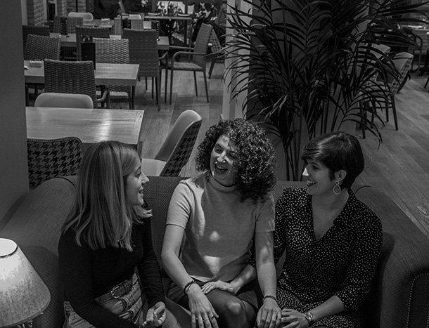 Al igual que Diego, David, Joselu y Germán -los miembros de Messura-, Marta, Irene y Sara también son profesoras de música y ahí, en la docencia se encuentra el origen de ‘Ellas’. “Yo trabajaba con Diego en la Escuela de Música, en Amadeus -recuerda Marta- y al formar Messura, me llamaron para realizar algún arreglo con ellos y para participar en la presentación de un videoclip. En un momento dado decidieron que les hacía falta más cuerda. Me preguntaron por posibles músicos. Entonces me puse en contacto con Sara. Empezamos a colaborar las dos. Poco a poco a Messura le fueron saliendo conciertos y yo no podía estar en todos, así fue como se incorporó Irene. Y de ahí, como a las tres nos encantaba tocar con Messura, les propusimos que fuéramos un trío de cuerda”. Irene bromea: “Y no se pudieron resistir”.
