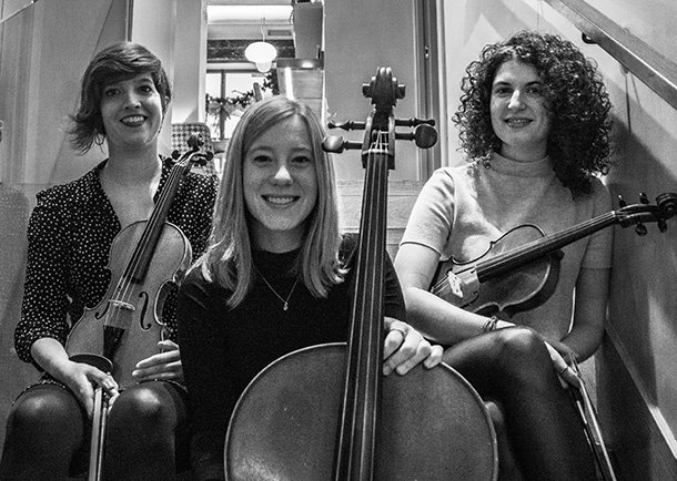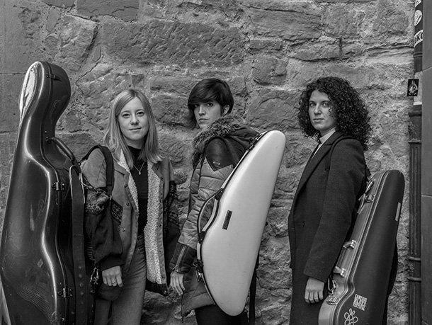 'Ellas' son Marta e Irene, violines, y Sara, chelo. Son el trío de cuerda de Messura