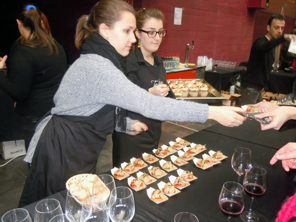 La sensación al acceder al patio central de CCR es la de permanecer en pleno Casco Antiguo de la ciudad, en una plaza más de Logroño. Y no sólo por la baja temperatura, también por los altos muros que lo abrazan y que acogen las diferentes dependencias de este espacio dedicado al ‘Rioja’. Sobre el escenario, los integrantes de Musicum Perscusión sorprenden con ‘La pantera rosa’ y ‘A momento of funk’, de Mancini y Houllif; mientras en las barras laterales comenzaban a clarearse un sinfín de colores, aromas y sabores. Los pinchos del Tastavin, La Tavina y el Rincón de Alberto, una extraordinaria representación de los tesoros gastronómicos de la capital riojana –La Laurel y La San Juan- para los que no hace falta mapa ni plano, sólo buen olfato para lo bueno.