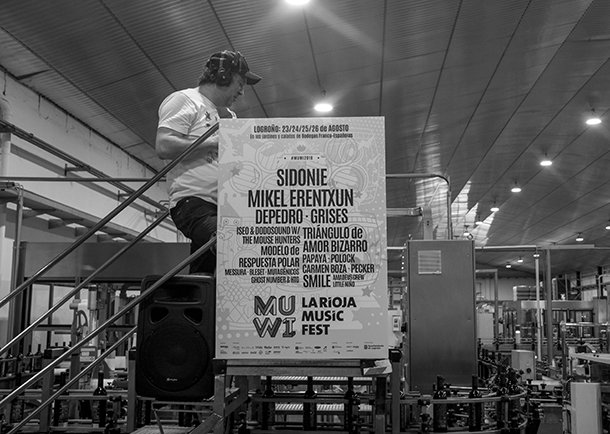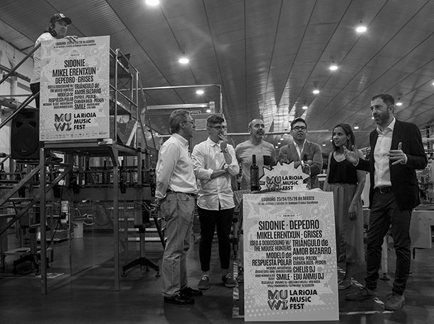 La línea de embotellado de Bodegas Franco Españolas operaba a buen ritmo mientras el dj pinchaba desde los alto de su atalaya. Desde allí. El vino Muwi comenzaba a hermanar por tercer año la tradición de una bodega riojana centenaria cin la filosofía del festival. Unas botellas etiquetadas con el cartel del MUWI 2018 y que bien pueden disfrutarse en buena compañía al tiempo que se escucha la mejor música o transformarse en recuerdo de un certamen que reunirá entre 23 y el 26 de agosto a Sidonie, Mikel Erentxun, Depedro, Iseo & Dodosound W/The Mousehunters, Smile, Carmen Boza, Grises, Papaya, Messura, Triángulo de Amor Bizarro, Pecker, Ghost Number & His Tipsy Gypsies, Modelo de Respuesta Polar, Bleset, Mutagénicos, entre otros. "La imagen de marca -describió José Luis Pancorbo, promotor del festival- es esencial para nosotros y lo son también los dj's que darán continuidad entre actuaciones, cerrarán conciertos y animarán los diferentes escenarios del MUWI". Serán 12 y este año contarán con un espacio de actuación inéditoque suma a los habituales. El responsable de Impar Eventos destacó a Chelis DJ, referente en el panorama clubbin nacional, y a Edu AnMu que llegará a Logroño después de su paso por BBK Live.