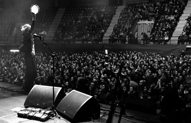 Lo que no cabe tampoco duda es el éxito de público, ayer con una gran entrada y todo vendido para el concierto de Amaral, La Pegatina y Talisco. El Palacio de los Deportes volvía a mostrar el buen aspecto de las grandes ocasiones, con un público diverso y con mucha gente que llevaba numerosos conciertos de Love of Lesbian a la espalda, el que esto firma el sexto con el de anoche, pero también había mucha gente deseando ver a Elefantes. No llegamos a The Owl Project, ganadores de la Guerra de Bandas del año pasado, y Elefantes ya estaban calentado al público con su Pop. Con seis discos en su haber, para una generación son los que hicieron Azul (2000), que les puso en el mapa, el tremendo La forma de mover tus manos (2003) o Somos nubes blancas (2005). Luego llegó una separación de la banda hasta 2014 cuando publicaron Rinoceronte y presentaron ayer su trabajo de 2016 con Nueve canciones de amor y una esperanza, del que dieron buena cuenta. Pero la gente se volcó con ‘Azul’, la muy emotiva ‘Que yo no lo sabía’, ‘Piedad’, la dinámica ‘Somos nubes blancas’ o la versión de ‘Te quiero’ de José Luis Perales, que fue muy coreada por el público. Solventes y directos, Shuarma, Jordi Ramiro, Julio Cascán y Hugo Toscano dejaron buen sabor de boca.