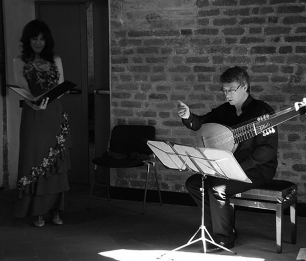 Por su parte, Gabriele Palomba se diplomó en laúd con honores en la Escuela Cívica de Milán bajo la dirección de Paul Beier. Ha asistido a clases magistrales con Pat O'Brien, Chris Wilson, Anthony Bailes y de música junto con J. Christensen. Colabora habitualmente con el Ensemble Galilei, Concierto Ensemble, La Venexiana, La Cappella della Pieta 'de Turchini, Resonancia, Ensemble Aurora y otras formaciones italianas, abordando repertorio que va desde el siglo XVI hasta el madrigal y la cantata barroca.