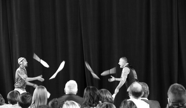 Sin temer jamás al frío ni al calor el circo siempre ofrece su función y así sucedió una vez más ayer en Logroño en el acto inaugural de Actual 2017. A las once de la mañana la niebla, en complicidad con las brumas que escapan de la cercanía del Ebro, aún ocultaba el Palacio de Congresos. Los cero grados que marcaban los termómetros transformaban en valientes a quienes subían a la carcasa del globo aerostático. Arriba, entre la neblina, la temperatura debía descender al mismo tiempo que el dirigible ascendía. Dentro, en la carpa circense en que la imaginación había convertido Riojaforum el calor de la calefacción recordaba al instante el entusiasmo que siempre genera el circo.