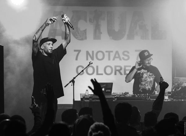 La música regresó a Actual para cerrar la primera jornada. Tan sólo fue preciso atravesar el puente de Hierra y acercarse a Bodegas Franco Españolas donde actuaron los riojanos RHÁ, KIM & DJ Vieltán y 7 Notas 7 Colores, que celebraron en el festival logroñés el vigésimo aniversario de su álbum de debut ‘Hecho, Es Simple’, para muchos el libro sagrado del hip hop en castellano./Javi Muro