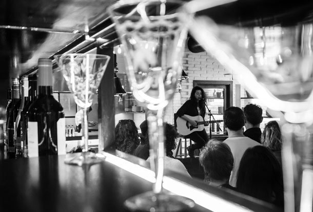 La música comenzó a sonar tan sólo unos minutos después en Actual. Los temas acústicos interpretados por Alice Wonder, cantante, guitarrista y pianista, caldearon la fría mañana logroñesa en el interior del Wine Fandango. Las redes sociales pusieron dieron a conocer su voz por medio mundo y desde los virtual ha llegado a algunas de las míticas salas de Madrid, como el Costello Club o el Lucy in the Sky. Merece la pena escuchar las canciones de esta madrileña dueña de una cálida voz y capaz de crear una atmósfera entrañable y cercana desde los primeros acordes de su guitarra.