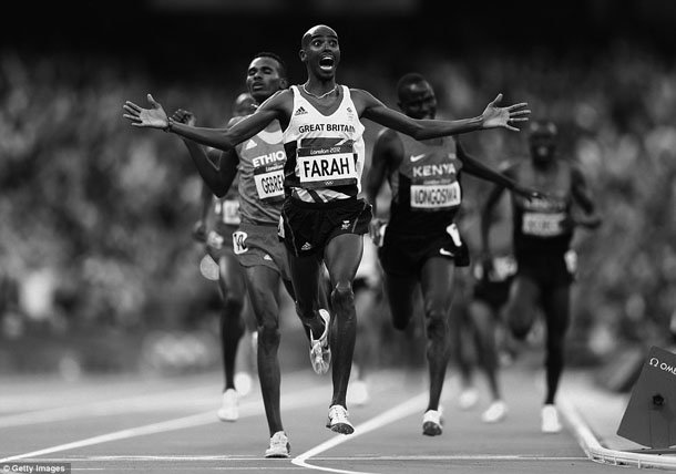 A diferencia de otros atletas fichados a base de dinero sobre el pasaporte, Farah se ha formado deportivamente en Inglaterra, tras abandonar Mogadiscio siendo tan sólo un crío. Pronto, el profesor de educación física de su escuela, Alan Watkinson, intuyó que el chaval parecía tener cierto talento para el atletismo. Farah era buen futbolista y también lograba grandes lanzamientos con la jabalina, pero cuando te gusta correr no hay escapatoria; entonces el único refugio son las zapatillas. Eso debió pensar el simpático fondista, ya que decidió darle la razón a su primer entrenador y conquistar el doblete sobre el tartán de Londres, donde se colgó las medallas de oro en los 5.000 y 10.000 metros. Se convirtió en el emblema de los Juegos para los británicos –de la mano de la vencedora del héptalon femenino, Jessica Ennis- y quizá en el deportista más mediático de los Juegos…