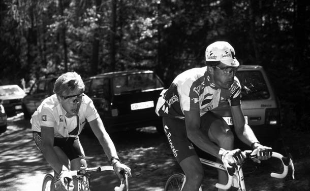 Aquel Giro de 1994 lo ganó Eugeni Berzin, un ruso enrolado en el equipo Gewiss que ya había logrado aventajar a Indurain en dos minutos en la primera contrarreloj de aquella carrera. Berzín llegaba avalado por su victoria en la clásica Lieja-Bastogne-Lieja, pero con el hándicap de haber ocupado el puesto noventa en el anterior Giro. En medio de la batalla entre el español y el ruso había aparecido un ciclista flacucho llamado Marco Pantani, que se había anotado la victoria en la etapa de montaña que precedía al paso por Aprica y la llegada al Mortirollo.