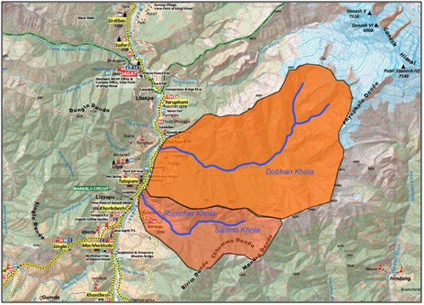 El punto de inicio del Dobhan Khola –el cañón principal elegido en la expedición- se encuentra a mayor altitud aún, ya que linda con la cumbre del Gasnesh IV (7.140 metros). Sus características: quince kilómetros de longitud, un desnivel de más de 2.500 metros y fuerte caudal durante todo el año. Uno de los mayores riesgos se encuentra en la elevada altitud de las montañas próximas, que ante cualquier cambio meteorológico pueden generar un incremento súbito del nivel del agua.