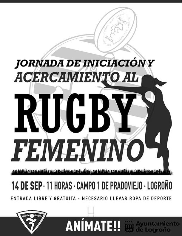 “Fomentar el deporte femenino es una de las vías más eficaces de lograr una sociedad con igualdad de oportunidades para hombres y mujeres. Es un gran fin en el que Logroño Deporte está muy comprometido por lo que celebramos y apoyamos todas las iniciativas que en este sentido se nos planteen, y mucho más si llegan directamente desde los clubes de la ciudad”. Así manifestó Rubén Antoñanzas, concejal de Deportes, el interés del Ayuntamiento por la Jornada de Iniciación y Acercamiento al Rugby Femenino que el Rugby Club Rioja ha organizado para este sábado, 14 de septiembre, a partir de las 11 horas, en las instalaciones municipales de Pradoviejo.