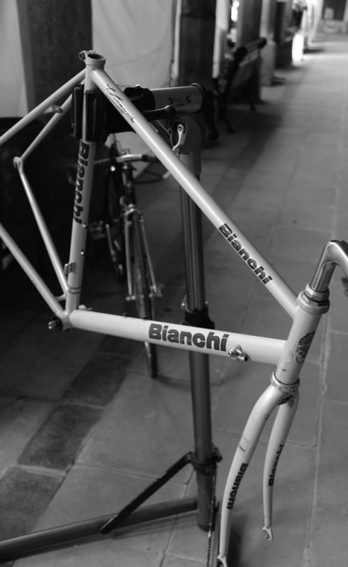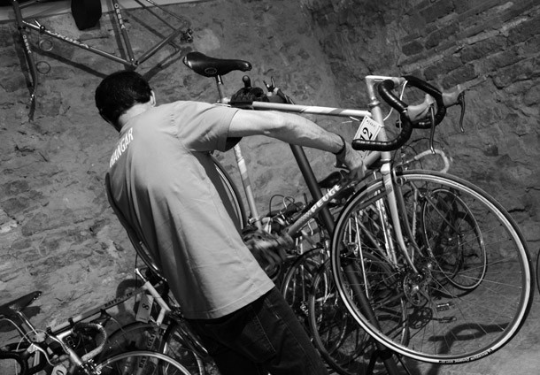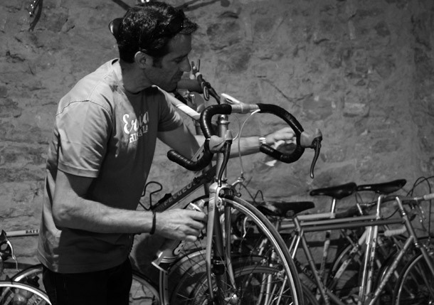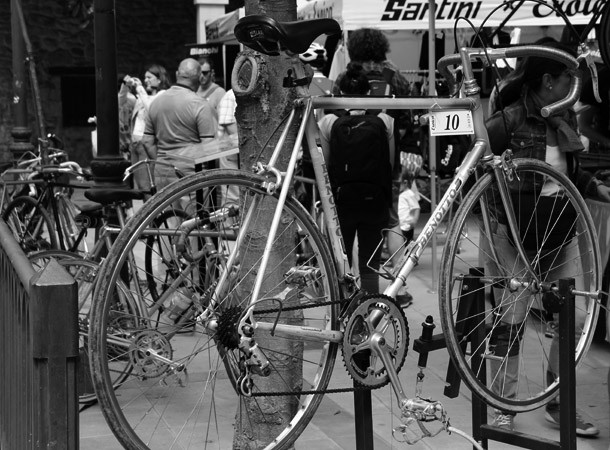 Y es que la Eroica es una prueba ciclista que se disputa sobre bicicletas fabricadas antes de 1987, con los cambios situados en el cuadro –cero electrónica-, que implicaban un gran tacto y complicidad con la propia bicicleta. Bicicletas que encerraban el pie en jaulas, cuando los pedales automáticos no eran siquiera una idea. “La Eroica es el verdadero espíritu del ciclismo –asegura el italiano-, es el espíritu del deporte por el deporte, de disfrutar sobre la bicicleta y cuando tienes que reponer fuerzas almorzar un taco de jamón con los compañeros”. Nada de geles, ni de GPS,, ni cronómetros, ni de otros inventos recientes.
