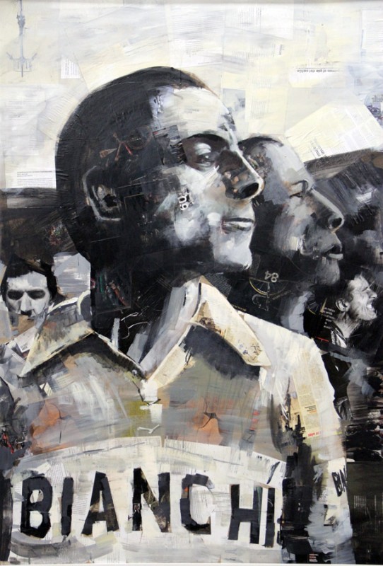 Otro italiano de leyenda –rival y amigo del mencionado Gino Bartalli- ocupa un lugar destacado en la exposición de pintura que acoge la Vinoteca de Bodegas Riojanas. El retrato de Fauto Coppi, enfundado en un malliot del equipo Bianchi, muestra a un campeón orgulloso y concentrado.
