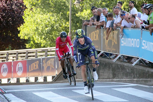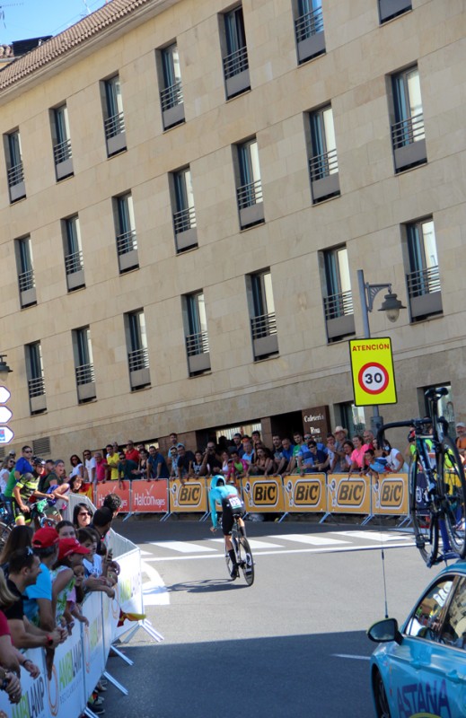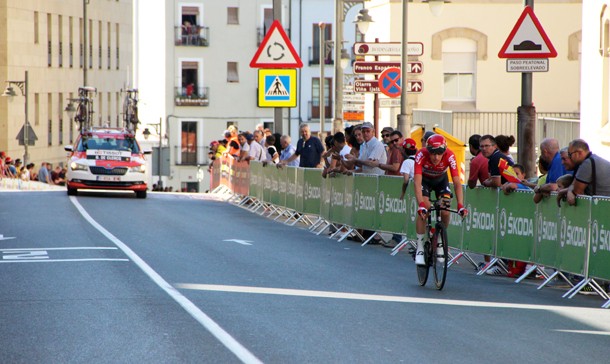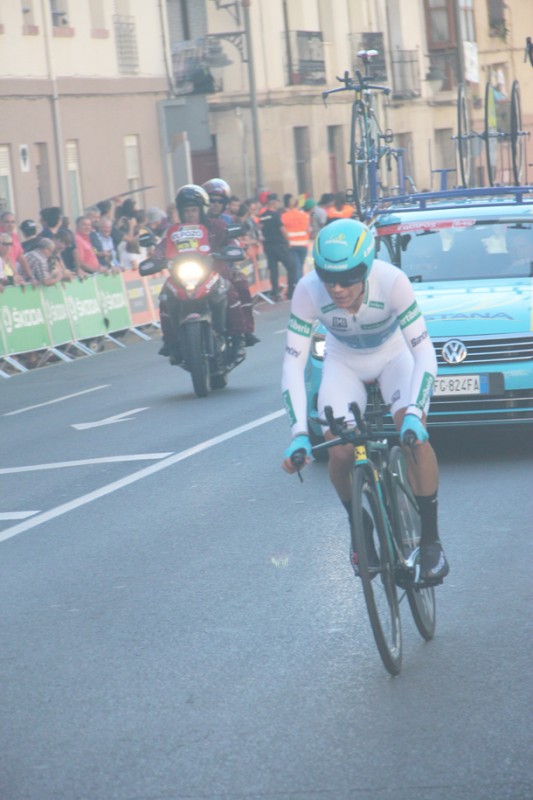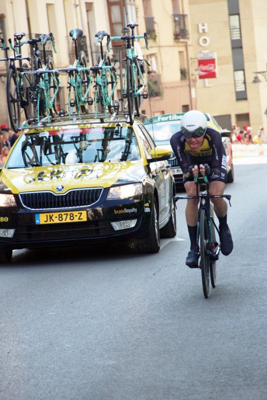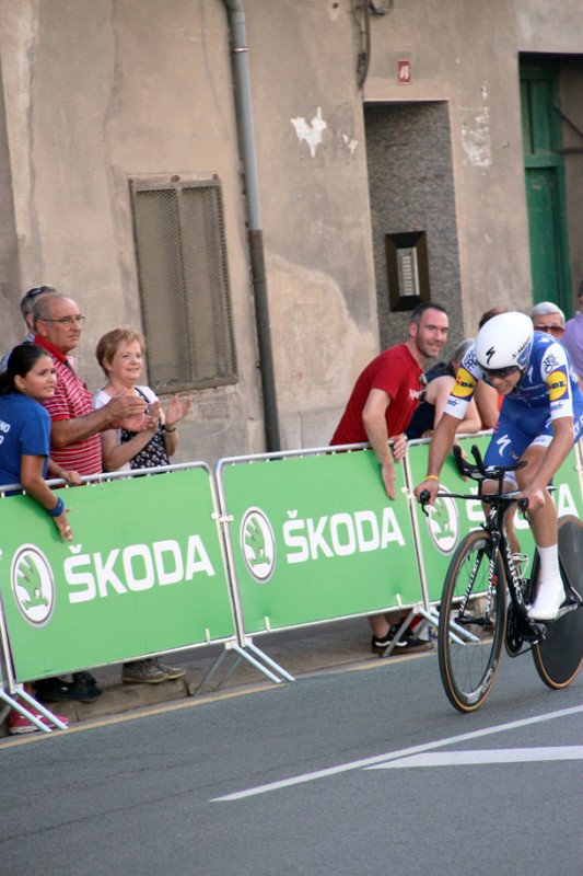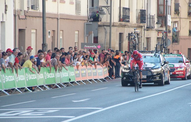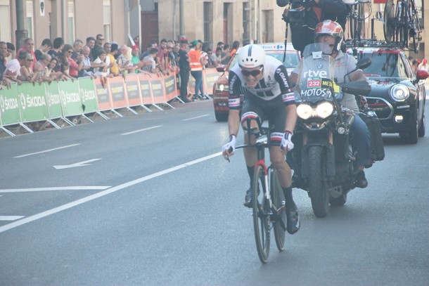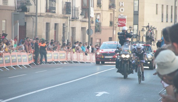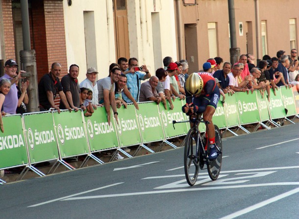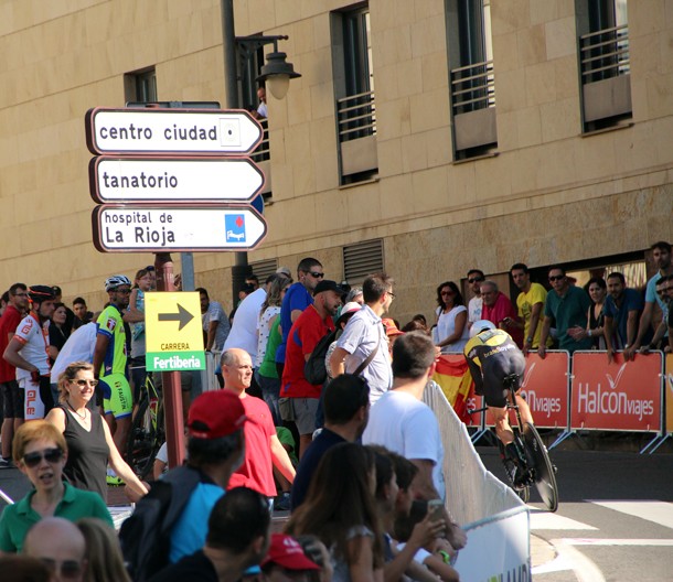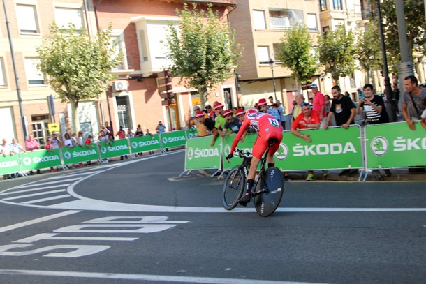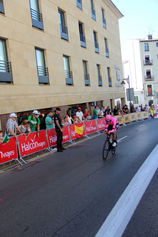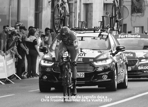 El ciclista británico del equipo SKy, Chris Froome, venció en la etapa contrarreloj de Logroño y afianzó su liderato antes de enfilar los últimos cinco días de carrera. Aún así, La Vuelta no está decidida a falta de etapas de gran dificultad, con llegadas en Los Machucos y el Angliru. Junto a Froome en la contrarreloj de 42 kilometros de Logroño destacaron el holandés Wilko Kelderman, el italiano Nibali y Alberto Contador. Tampoco lo hicieron nada mal el ruso Ilnur Zakarin y el holades Poels. Peor les fueron las cosas a Chaves, López, Aru y David de la Cruz. Ahora, Froome aventaja en 1 minuto y 58 segundos a Nibali; tres minutos y siete segundos a Kelderman y Zakarin; y 4 minutos y 58 segundos a Alberto Contador. La galería de imágenes pretende ser un resumen de la etapa desde el último kilómetro, desde la rampa de Avenida de Viana./J.M.