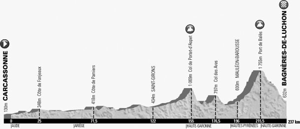 El perfil de la etapa era conocido por todos los corredores. El final en Bañares de Luchon era fijo en muchas de las ediciones y muchos corredores encontraban en las diferentes carreteras entrelazadas alrededor de la ciudad sus itinerarios favoritos de entrenamiento. Un primer tramo rompe piernas con continuas subidas y bajadas de unos 140 kilómetros iba mermando las fuerzas, después comenzaba la parte más dura las ascensiones a los puertos de Aspet y Port, antes de tomar el desvío que conducía a la línea de meta. Ese día, en el peor de los casos, recibiría una palmadita en la espalda y un "pero a dónde vas, otro día será", por parte de su director o alguno de sus compañeros.