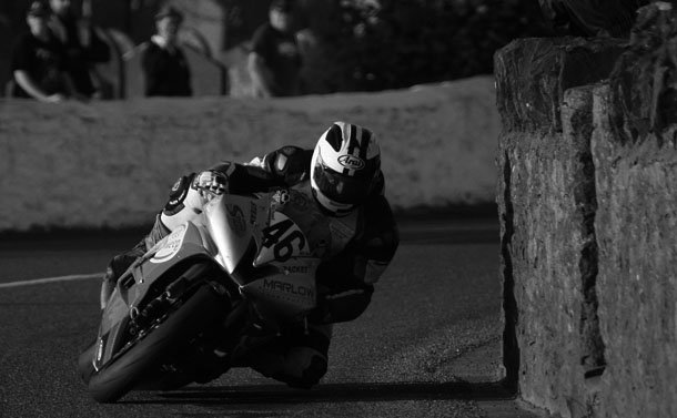Sobre el asfalto de calles de la Isla de Man se puede contemplar sin tener que rebuscar demasiado la marca de neumáticos de motocicletas. Unos dicen que se trata de la rúbrica de los pilotos de leyenda; de Dunlop, de Molyneux, de Hailwood, Hislop y Giacomo Agostini. Otros recuerdan, que esas marcas que han dejado las frenadas de las motos son un aviso, una señal de que te encuentras en el circuito más bello y más peligroso del mundo; donde la distancia entre la gloria y la muerte se reparte entre las doscientas curvas que completan el recorrido.