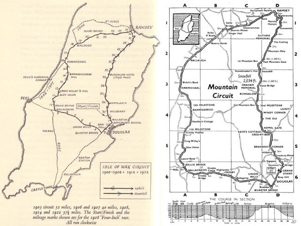 El primer circuito tenía una longitud de 25 kilómetros e intercalaba caminos de tierra con ramales asfaltados. A partir de 1911 se diseñó el conocido como Mountain Course. Crecía así su longitud hasta los 60 kilómetros, y también el número de curvas -más de doscientas- y de rasantes. Unas condiciones que ha elevado a la categoría de mito esta prueba, que presenta unos condicionantes únicas para los pilotos que deciden inscribirse. Unas circunstancias que no se encuentran en ningún otro circuito del mundo y que aúnan tradición, velocidad y riesgo; no en vano son ya 105 años disputando carreras –con el parón de la Guerra- y cerca de 250 muertos.
