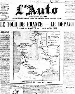 El primer Tour se celebró en 1903, entre el 1 y el 19 de junio. Fueron seis etapas y un recorrido total de 2.428 kilómetros. La organización corrió a cargo del diario francés L’Auto-Velo, predecesor de L’Équipe. Fue la primera gran carrera ciclista por etapas de la historia. Comparada con el Tour, La Vuelta o el Giro actuales contaba con un número muy reducido de etapas –ahora son 22 días de competición-, pero fueron mucho más largas. La distancia media fue de cuatrocientos kilómetros; hoy en día se sitúa entre los 170 y los 180. Además, los participantes no estaban obligados a tomar la salida en los seis parciales; eso sólo era requisito si se quería contar para la clasificación general.