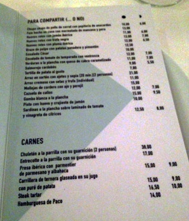 El precio medio sin copa oscila entre los 25€ -30€. Tienen medias raciones, lo que permite que puedas probar muchos más platos. Menos mal porque son todos muy apetecibles.