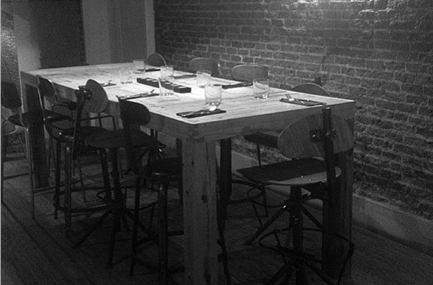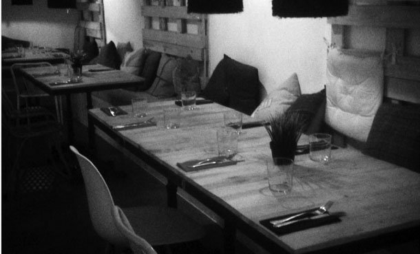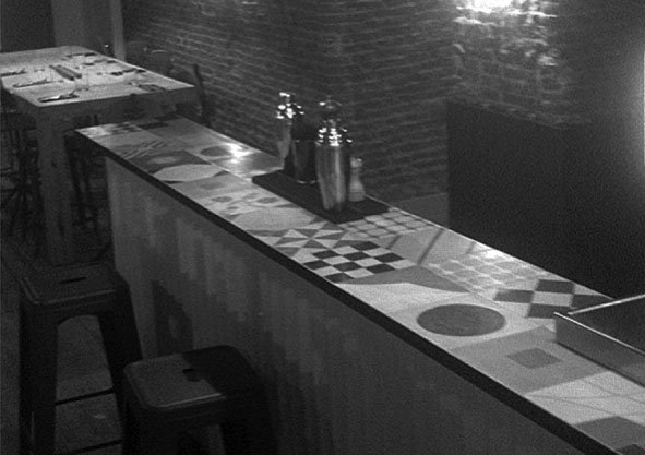 Un local con dos plantas muy diferentes. La planta baja es una cueva muy amplia y abovedada de ladrillo visto. Los conductos del aire acondicionado al descubierto que le dan un toque muy moderno. Tiene luz natural que se cuela por las ventanas que dan a la calle. Al fondo un reservado.Una gran barra a la entrada con azulejos de varios colores de formas geométricas. Una gran mesa alta comunal de madera y varias pequeñas junto a las ventanas. Maceteros que hacen de lámparas y coladores que cubren las bombillas en las paredes, suelos de madera … ¡todo muy chulo!