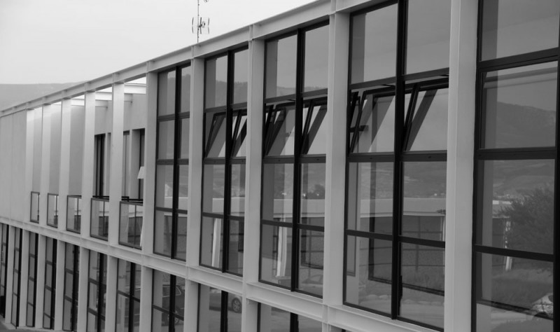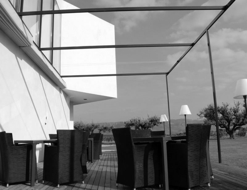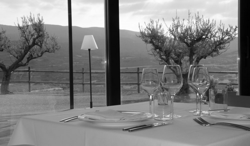 Porque la trasparencia de las cristaleras ofrece luminosidad e integra la naturaleza en un edificio que son tres –hotel, bodega restaurante-; tres espacios enlazados sin solución de continuidad.
