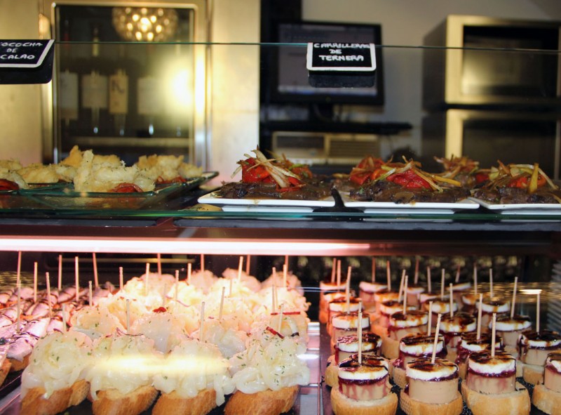 La ventaja y, al mismo tiempo, el inconveniente de elaborar un número tan elevado de pinchos es que trabajas con un número de materias primas muy grande. Si haces un pincho de choricillo hay pocas opciones, pero, por ejemplo, uno de los pinchos nuevos conjuga champiñón relleno de changurrio, gambas y jamón ibérico. Disponer de tantos ingredientes te permiten jugar y preparar muchos pinchos distintos.