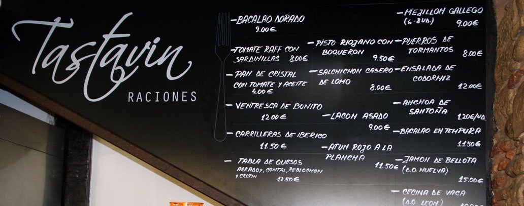 Yo empecé en mis tiempos jóvenes como camarero; era una forma de ganarme la vida mientras estudiaba. Trabajé con un amigo que tenía un negocio y allí ya empezó el gusanillo que me decía que aquello me gustaba. Lo que pasa es que luego, por circunstancias personales -mi padre murió cuando yo tenía doce años, mi hermano mayor tenía tres años más que yo- la situación familiar estuvo complicada. Mi hermano siguió trabajando en el negocio de mi padre y llegó un momento en que yo me tuve que poner como socio; así estuvimos quince años. Nada que ver con la hostelería. Pero llegó un momento en la vida en que o haces lo que crees que tienes que hacer o ya lo dejas y te olvidas. Y ahí fue cuando decidí que había que tirar para adelante y que había que hacer lo que uno quiere. Dejé la empresa que tenía con mi hermano y le vendí mi parte. A partir de ese momento puse todos mis empeños aquí, en el ‘Tastavin’. La ubicación me parecía muy importante y la calle San Juan para mi ha sido muy querida siempre como cliente. Siempre ha sido un rincón de Logroño que me ha parecido especial, por su singularidad, por su vecindad… aposté por ello en un mal momento, en muy mal momento, porque entonces todavía se pagaban traspasos altos, la mano de obra estaba carísima, especialmente la de los cocineros. Fue un comienzo complicado; complicado pero también bonito. Con mucha ilusión pusimos en marcha el restaurante, con una respuesta de público buena. Lo que nos hizo cambiar a bar de pinchos fue… la puñetera realidad; la situación económica. Puedes vivir de un sueño, pero a final de mes tenemos que pagar hipotecas, etc…, era inviable. Económicamente era inviable, por eso cambiamos. Pusimos la barra y mantuvimos un tiempo las dos opciones, pero no dábamos a vasto. Lógicamente decidimos que el negocio más rentable y bonito era el bar de pinchos.