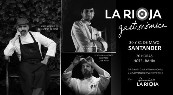 En esta ocasión, el cocinero riojano Ventura Martínez (Chef Nino, Delicatto), contará como anfitriones con Sergio Bastard (La Casona del Judío) y Jesús Sánchez (Cenador de Amós, Centro Botín). 'La Rioja Gastronómica' pretende proyectar los principales valores con los que cuenta La Rioja a través de la gastronomía para, después, promover su disfrute en origen. Para ello, se ha celebrado ya en Madrid, donde contó con la presencia de los cocineros riojanos Francis Paniego (El Portal del Echaurren, Marqués de Riscal) y Ventura Martínez y de los cocineros ubicados en Madrid Sacha Hormaechea (Sacha) y Javier Estévez (La Tasquería). Tras Santander, esta campaña divulgativa se desplazará a San Sebastián (junio), Bilbao (octubre) y Barcelona (noviembre).