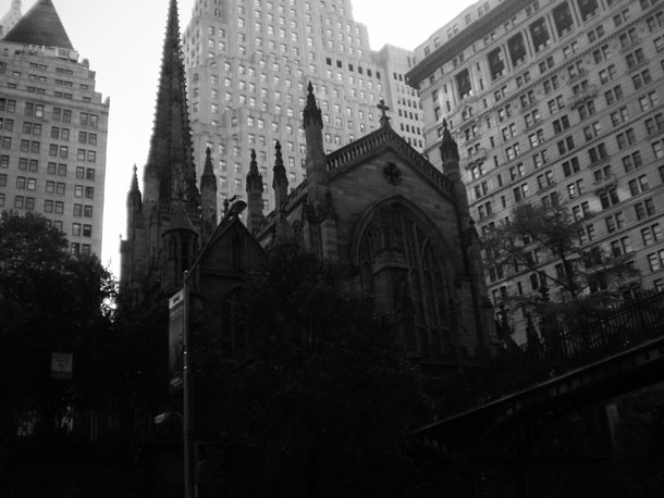 «Llegué a Nueva York y guardé rigurosa cola y no fumé y, en el formulario para no inmigrantes, fui prudente y no dije que había viajado a Nueva York para encontrarme con la nieta de Trotski. Las primeras horas las dediqué a recorrer todos los lugares recomendados por los amigos y también los que me recomendé a mí mismo. Fui al Cañón de los héroes de Brooklyn a presenciar el apoteósico recibimiento de la ciudad a los Yankees, el mejor equipo de toda la historia del beisbol. Subí al Empire State, crucé Tiffanys en diagonal, fotografié el juke-box de un bar anónimo que terminó por convertirse en mi cuartel general (el Runyons, en la segunda avenida), escuché música religiosa en la catedral de St. Patrick, almorcé en el Hotel Plaza, vi el atardecer sobre el Hudson en un banco parecido al de Woody Allen en aquel amanecer en el que profesó su declaración de amor (“Digan lo que digan esta es una ciudad maravillosa”), y me senté a llorar a la entrada de la Grand Central Station.» Enrique Vila-Matas, 1999.