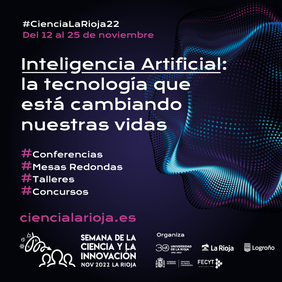 En esta Semana de la Ciencia y la Innovación se debatirá sobre qué se entiende por Inteligencia Artificial, conoceremos algunos de los campos en los que se utiliza, nos sorprenderemos con sus aplicaciones, reflexionaremos sobre sus riesgos y trataremos de vislumbrar su futuro próximo, sin perder de vista la contribución a su desarrollo por parte de diferentes actores riojanos.
