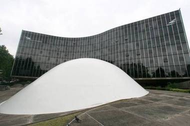 La explosividad de su estilo rompe fácilmente las fronteras, lo que en 1954 supone para Niemeyer un doble triunfo. Por un lado, formar parte del equipo que diseña la sede las Naciones Unidas en Nueva York; por otro –y no menor- trabajar junto a Le Corbusier, arquitecto de cuya escuela, sino religión, es fiel seguidor.