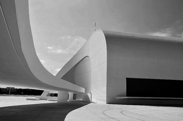 Unas líneas curvas que el arquitecto brasileño relaciona con la naturaleza, con los paisajes que conoce y ha disfrutado. “No es el ángulo recto el me atrae, ni la línea recta dura, inflexible, creada por el horizonte. Lo que me atrae es la línea curva, sensual, la curva que encuentro en las montañas de mi país, en el curso sinuoso de los ríos, en las olas del mar, en el cuerpo de la mujer preferida. De curvas esta hecho todo el universo; el universo curvo de Einstein”.
