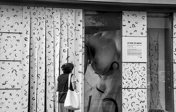 “LOVISUAL es -describe Daniel y Manuela Niño, y Javier Peña, organizadores del certamen- un encuentro que reivindica el valor del diseño como transformador de la sociedad. Un festival que durante el mes de octubre convierte la capital de La Rioja en el gran escaparate del diseño, la creatividad y la cultura”. La ciudad es ya, por tercer año consecutivo, una galería a pie de calle que permite disfrutar de las piezas de alabastro talladas por el cincel del escultor Félix Reyes en la Joyería María José o de la ilustración de Andrea Santamarina que recorre el escaparate de la tienda de moda Mikonos, en la que los personajes parecen tratar de huir de los límites del ventanal. “Una representación sutil y simbólica -detalla Santamarina- de un grupo de mujeres que rechaza su papel de objeto dentro del ese espacio”.