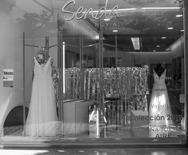 Sin abandonar la moda femenina, los arquitectos y diseñadores Pablo Ferreira y Andrés Izquierdo han reflexionado sobre “la realidad de una sociedad que se va destapando en la que medida que libere la responsabilidad y consecuencia de nuestros deseos más extraños y voluptuosos”. El escenario de su obra ha sido la tienda Mandarina y su obra lleva por título ‘Lobe’. Voyerismo versus capitalismo. Prácticamente enfrente, en Novias Senda puede contemplarse ‘El Pao de Ultranovia’, que lleva la firma del arquitecto Valentín Sanz. “Ultra Novia crea heroínas de forma nómada, viaja potenciando las habilidades de quien hace uso de su traje, un traje que que cambia, se especializa y adapta a cada una de las usuarias. El Pao es el refugio donde se guarda el traje y donde se prepara Ultra Novia”.