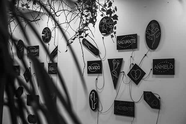 'Rumble in the Jungle’ es una pieza de instalación artística compuesta por nueve símbolos dibujados a través de luces LED, “encarnando así -cuentan Álvaro Carrillo y Gala Knörr- a través de sus líneas las diferentes intencionalidades detrás de una misma acción, utilizando como fuente de inspiración los carteles luminosos y neones iconos del deseo y el consumo típicos de las grandes urbes”. Lucen en Feliparán Floristas.