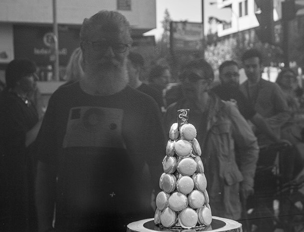 En la pastelería Iturbe -establecimiento ya habitual en LOVISUAL- ha desarrollado su creatividad el arquitecto Javier Dulín. “He realizado un ejercicio de puro escaparatismo. El diseñador al servicio del producto que la pastelería realiza desde 1956 de manera artesanal”. Lo ha llamado ‘Cannelle’ y si no se vigila a los golosos que pululan por la ciudad quizá no dure demasiado tiempo expuesta.