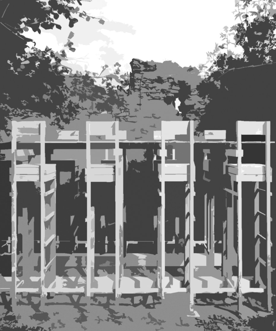 Antigua fábrica de muebles y paños. Una mesa con algunas sillas. Lavarse las manos en la entrada. Una lámpara que llena de calidez el espacio. Una puerta que puedes cerrarte a ti mismo. La instalación intenta romper el límite entre la naturaleza y el espacio creado por el hombre con pocos cambios. Una alfombra formada por vegetación, un techo que es el cielo y la pared de una habitación formada por una pared de piedra en ruinas. Se crea una síntesis de la creatividad cruda de la naturaleza y la intervención a escala humana. La ruina renace como espacio comunitario, embarcándose en otro viaje en el ciclo de la vida. El espacio se convierte así en el lugar de encuentro del festival, donde subiendo alto, podemos sentarnos alrededor de la mesa, profundizar en el momento, y luego regresar con una botella de vino para escuchar el sonido de la naturaleza.